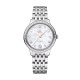 Ref. 434.15.34.20.55.001 - Dieses 34-mm-Modell aus Edelstahl besitzt eine diamantbesetzte Lünette und ein Zifferblatt aus weißem Perlmutt. Die Anzeige zeichnet sich durch Zeiger mit PVD-Beschichtung aus Sedna™-Gold sowie alternierende römische Ziffern und Diamantindizes in Halterungen aus 18 K Sedna™-Gold aus.
